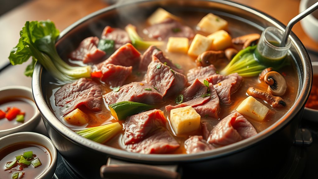 Nothing beats gathering around a simmering pot of Chinese hot pot in your own home. It’s the perfect way to warm up during the winter months, bringing friends and family together for a communal dining experience. One of the best parts is customizing your meal, especially when it comes to sauce pairing and broth varieties. You get to decide exactly how bold or mild you want your flavors to be, making every bite tailored to your taste buds.