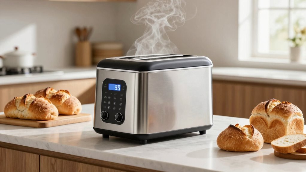 Although smart features can enhance your bread-making experience, their reliability remains a key consideration. If these tech elements fail, it can complicate bread machine maintenance or troubleshooting. To guarantee smooth operation, consider these points: