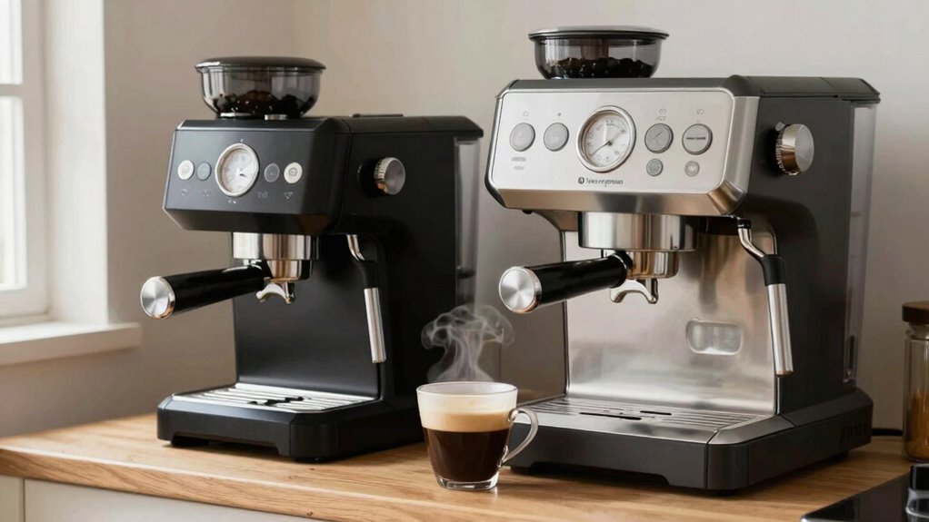 Think of full-size machines as the race cars of espresso brewing—they’re built for speed. Yes, they generally offer faster brewing times, thanks to their larger boilers and more efficient heat transfer. This means you get your espresso shot quicker and with more consistency, making them ideal if you crave efficiency and rapid brew speed. Their robust design guarantees they’re ready to deliver quality espresso at a moment’s notice, making your mornings smoother.