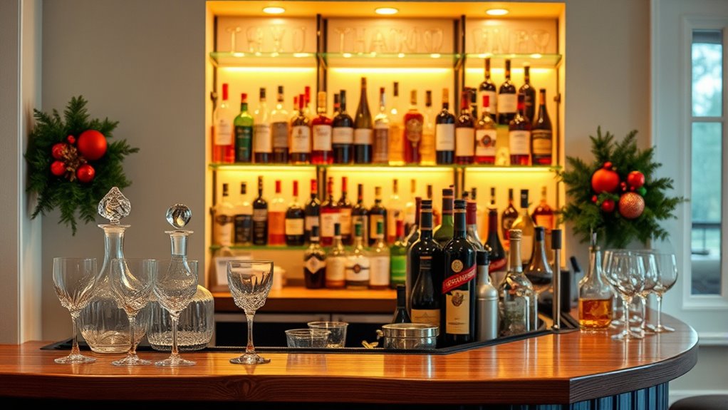 With your new home bar, you’re now the host of unforgettable holiday gatherings. Think of it like planting a festive garden—you’ll nurture it with your favorite spirits and mixers, watching your parties bloom with joy. Just like a well-tended garden, your setup creates a warm, inviting space where memories are made. So, pour yourself a drink, relax, and let your home bar be the centerpiece of the holiday cheer. Cheers to many joyful celebrations ahead!