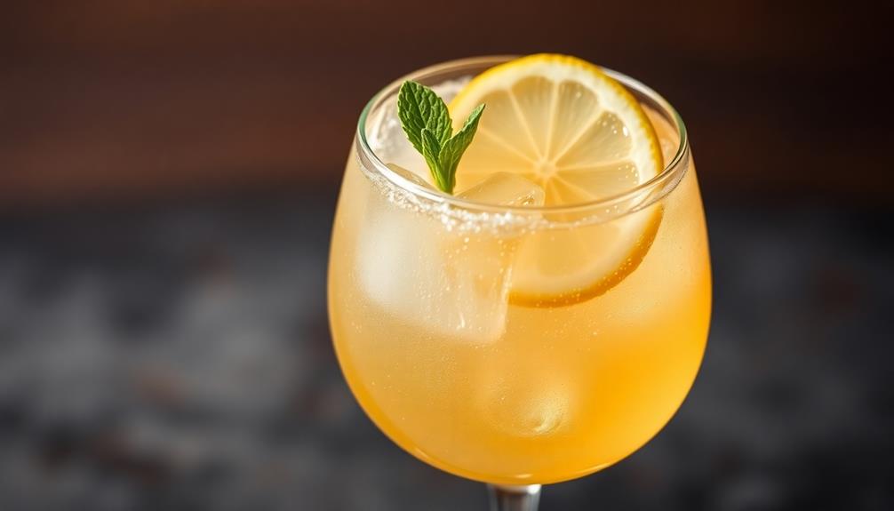 The St-Germain Spritz transports you to the elegant cafes of Paris. This captivating cocktail blends the delicate floral notes of St-Germain elderflower liqueur with the effervescence of sparkling wine for a refreshing and sophisticated drinking experience. Start by filling a wine glass with ice, then pour in the St-Germain and top it off with chilled prosecco. Gently stir to integrate the flavors, and garnish with a lemon twist for an aromatic finishing touch. This versatile cocktail is perfect for special occasions, and you'll find even more useful tips by exploring the full history and preparation details.
