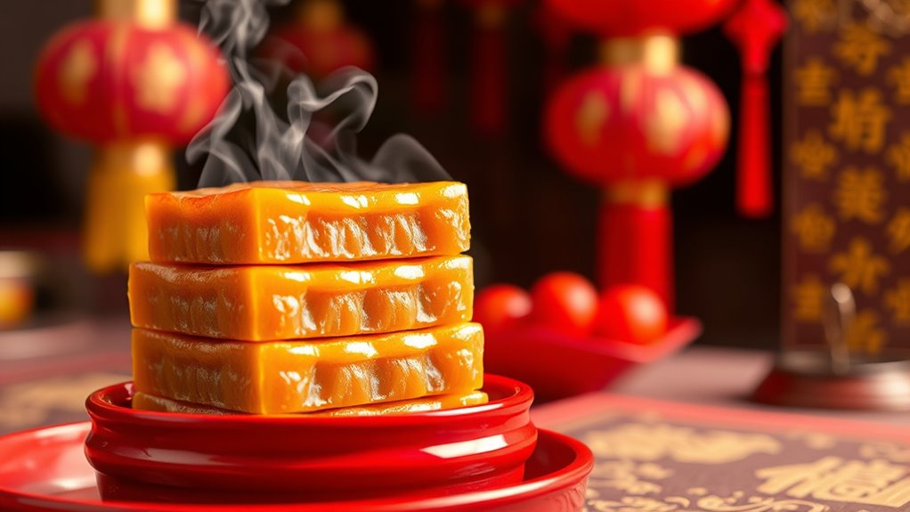 When you eat nian gao, you’re embracing its symbolic significance for prosperity and growth. It’s customary to enjoy this sweet rice cake during Chinese New Year to attract good luck and positive energy. The auspicious symbolism of nian gao reminds you to aim for progress and success in the coming year. Sharing it with family also emphasizes unity and the hope for a prosperous year ahead.