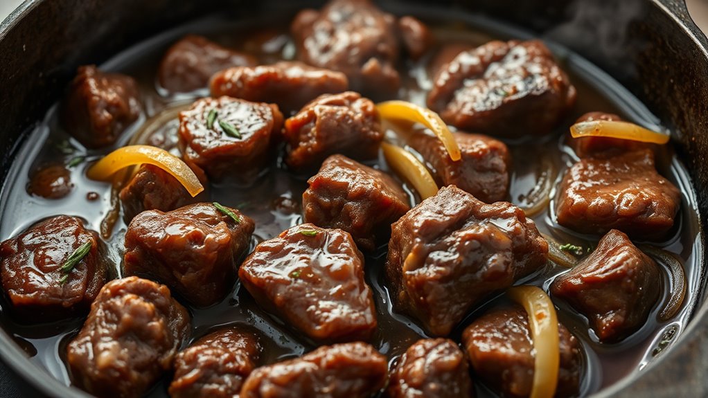Once you’ve picked the right meat, focus on the cooking techniques that make braising so effective. The process typically involves searing the meat first to develop a deep, caramelized crust that enhances flavor. After searing, you add a small amount of liquid—such as broth, wine, or even water—enough to come about halfway up the meat. Then, cover the pot tightly and cook at a low temperature. Whether you choose to braise on the stovetop, in the oven, or in a slow cooker, the key is maintaining gentle, consistent heat. This slow, moist heat allows collagen to break down gradually, tenderizing the meat without drying it out.