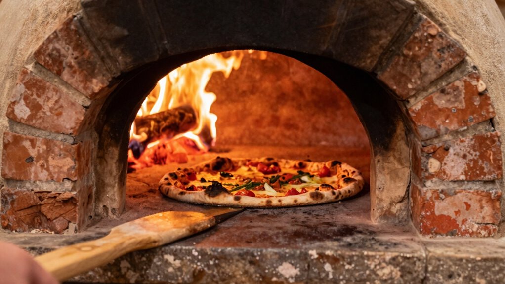 Ambient kitchen conditions, like indoor humidity and ventilation effects, directly impact oven temperature. High humidity can cause moisture buildup, lowering oven heat and making it harder to get a crisp crust. Poor ventilation traps warm air, causing temperature fluctuations. To maintain consistent oven temperatures, guarantee good ventilation and manage humidity levels. This creates a stable environment, helping you bake pizzas evenly without burning them.