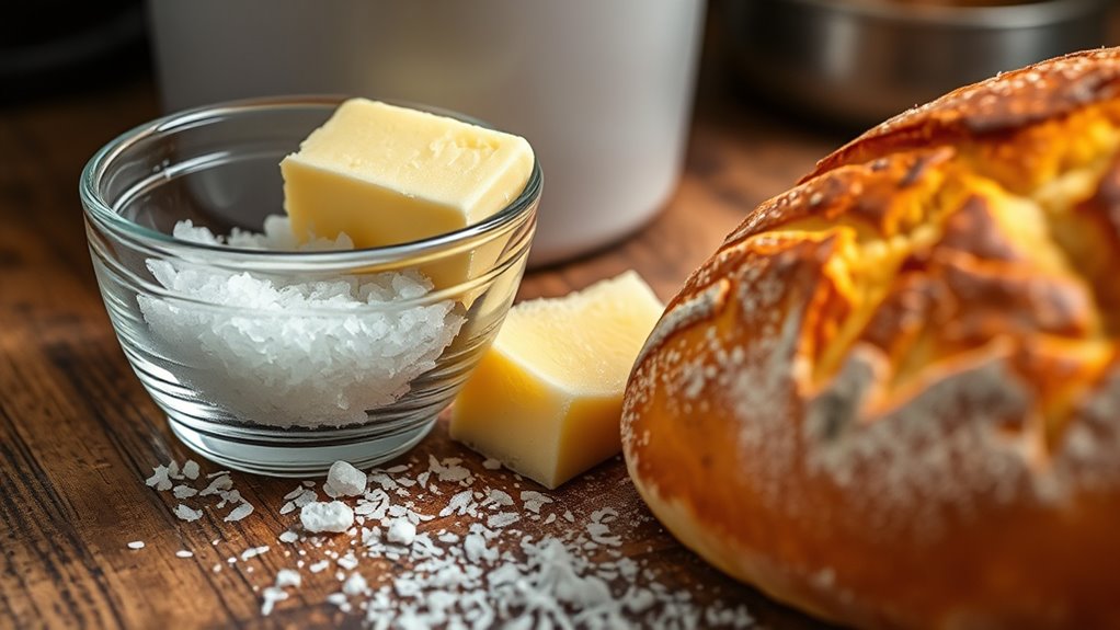 Ever wondered what makes your baked goods rise perfectly or turn out just right? It all comes down to understanding the science behind baking, especially how ingredients like yeast and gluten work together. When you start a bread dough, yeast activation is the first essential step. Yeast, a tiny living organism, feeds on sugars in the dough, producing carbon dioxide and alcohol. This carbon dioxide creates the bubbles that make your bread rise, giving it that light, airy texture. To guarantee proper yeast activation, you need the right conditions—warmth, moisture, and time. If it’s too cold, the yeast becomes sluggish, and your dough won’t rise well. Too hot, and you risk killing the yeast altogether. Once activated, the yeast begins to produce gas, which stretches and expands the gluten network in your dough.
