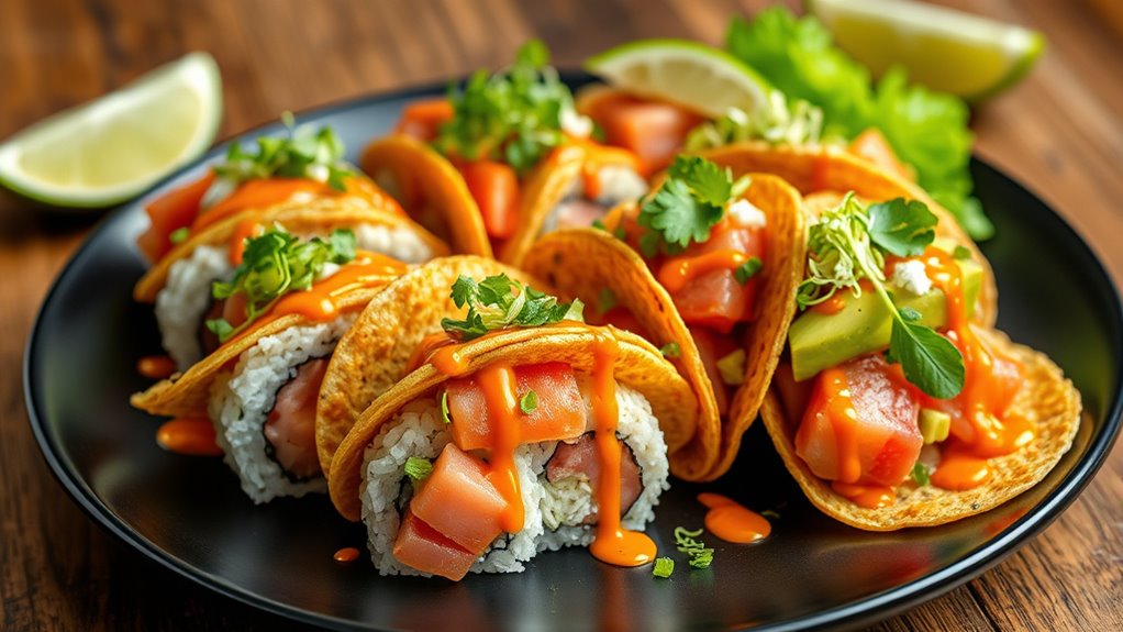 - Creative fusion ideas include sushi tacos, spicy Korean BBQ tacos, and sushi burritos that merge flavors and textures.