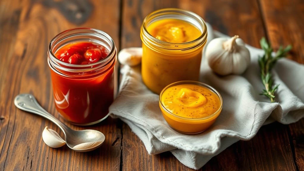 Have you ever wondered how to elevate your meals with simple, flavorful additions? Making your own condiments at home is a fantastic way to do just that. Not only do you get to customize flavors to suit your taste, but you also avoid preservatives and unnecessary additives found in store-bought options. When it comes to DIY ketchup and mustard, you access a world of sauce alternatives that can transform ordinary dishes into extraordinary ones. Plus, experimenting with flavor infusions allows you to create unique, personalized condiments that perfectly complement your meals.