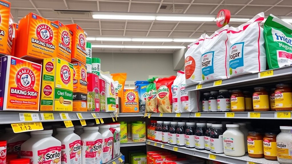 You can compare prices effectively by using online tools or apps that offer price comparison features for baking ingredients. Check store flyers and websites regularly, noting discounts and sales. Use shopping tips like making a list, sticking to your budget, and comparing unit prices to get the best deal. Don’t forget to contemplate store brands, which often offer quality at lower prices, helping you save while shopping smart.