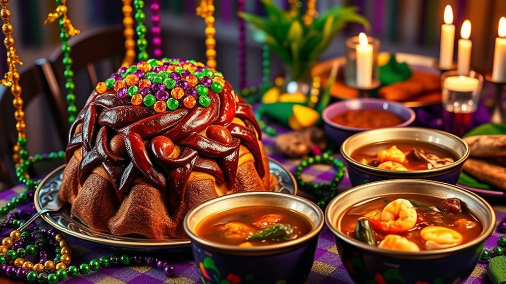 Alongside king cake, gumbo is a staple dish that embodies the rich, diverse culinary heritage of the festivities. This hearty, flavorful stew combines ingredients like sausage, seafood, vegetables, and spices, reflecting the melting pot of cultures that influence Mardi Gras. Preparing and sharing gumbo is a communal activity, bringing people together around the table to enjoy a taste of history. Whether you’re attending a street party or a family gathering, serving gumbo epitomizes the warmth and hospitality that define Mardi Gras. The aroma alone sets the mood for celebration, inviting everyone to partake in the delicious, comforting flavors that have been passed down through generations. Additionally, understanding the cultural significance of these foods can deepen your appreciation for the holiday’s rich heritage and diverse influences.