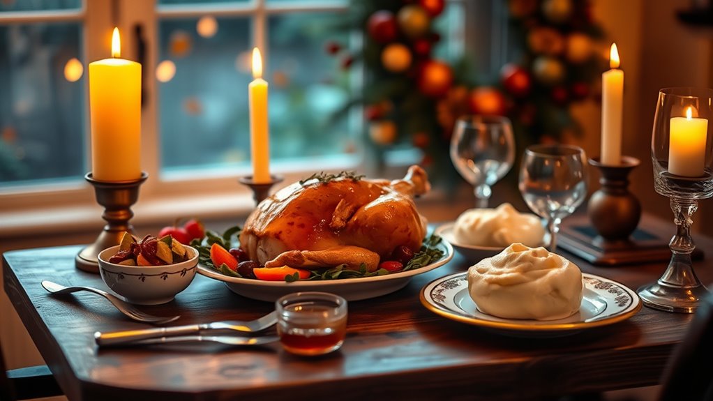 As you sit down to enjoy your scaled-down Thanksgiving feast, remember that quality beats quantity. Cooking for two is like a cozy fireside chat—intimate and meaningful. You don’t need a mountain of food to feel grateful; a simple, heartfelt meal can be just as satisfying. So, embrace the smaller celebration, savor every bite, and cherish these quiet moments. After all, it’s the love and gratitude you share that truly make the day special.