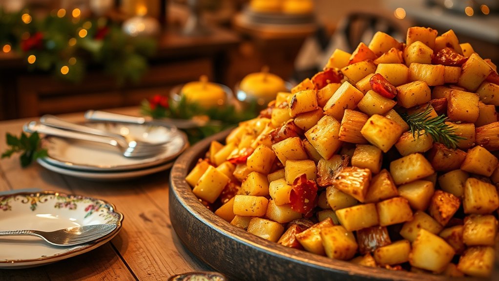 You might enjoy bubble and squeak as a holiday snack beyond Boxing Day, especially during Christmas festivities. For example, a family in London serves this traditional dish on New Year’s Day to use up leftover roast vegetables. Its versatility makes it perfect for various holidays when leftovers are abundant. So, yes, bubble and squeak can be a delicious, traditional dish enjoyed during different celebrations, not just Boxing Day.