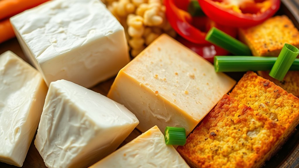 Have you ever wondered why plant-based proteins are gaining popularity? It’s because more people are discovering their impressive nutritional benefits and culinary versatility. These proteins, like tofu and tempeh, aren’t just good for the environment; they’re packed with nutrients that support your health. Tofu, made from soybeans, is a complete protein, meaning it provides all nine essential amino acids your body needs. It’s also rich in iron, calcium, and magnesium, which are indispensable for bone health, muscle function, and overall energy. Tempeh, another soy-based option, undergoes fermentation, which enhances its digestibility and boosts its probiotic content, contributing to gut health. Other plant-based proteins like seitan, made from wheat gluten, and lentils, chickpeas, and beans, offer a variety of options to meet your nutritional needs. Additionally, understanding the environmental impact of food choices can help you make more sustainable decisions when selecting plant-based proteins.