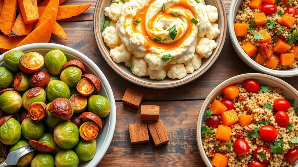 Thanksgiving is a perfect time to enjoy flavorful, plant-based sides that everyone will love, whether you’re vegetarian, vegan, or simply looking to add more veggie options to the table. While many people associate the holiday with traditional recipes like stuffing, mashed potatoes, and green bean casserole, you can elevate your feast by offering vibrant, plant-based sides that impress both vegans and omnivores alike. These dishes not only complement your main course but also add variety and freshness to your table setting. As you plan your menu, consider how holiday decor can set the mood—think rustic touches or autumn-inspired accents—that highlights the natural beauty of these vegetable-centered sides. This creates a warm, inviting atmosphere that celebrates the season’s bounty and encourages everyone to try new flavors.
